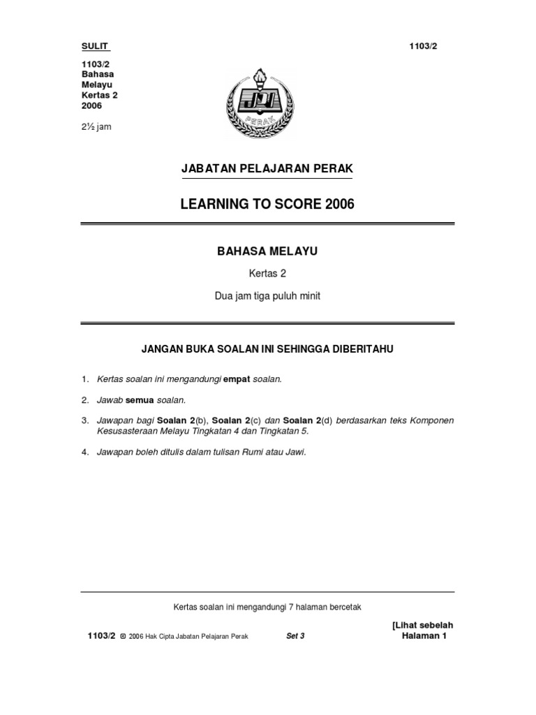 Contoh Soalan Bahasa Melayu Kertas 2 Di Perak